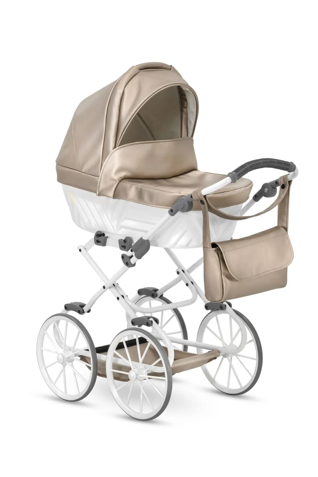 Il passeggino per bambole Rossie, realizzato in pelle ecologica di alta qualità, si distingue per il design elegante, la struttura stabile e la facile maneggevolezza. Dispone di grandi ruote, manico regolabile in 8 livelli e cappottina regolabile in 4 posizioni. La navicella spaziosa e il design pieghevole lo rendono pratico e comodo. Include borsa e cestino. Disponibile in bianco, rosa e cappuccino metallico, è adatto da 3 anni e stimola il gioco creativo.